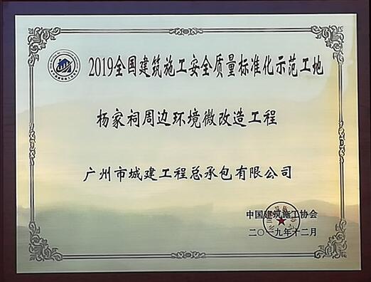 2020年1月,公司安徽住方科技有限公司年產(chǎn)300萬(wàn)㎡鋁合金門窗智能工廠工程項(xiàng)目和楊家祠周邊環(huán)境微改造工程,分別榮獲"2019國(guó)家優(yōu)質(zhì)工程獎(jiǎng)"與"2019全國(guó)建筑施工安全質(zhì)量標(biāo)準(zhǔn)化示范工地"。