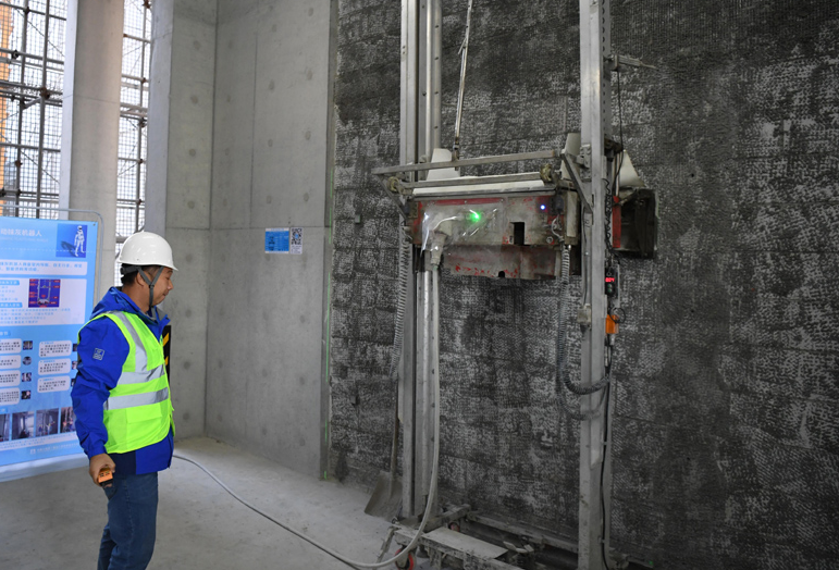 為提高生產(chǎn)質(zhì)量管理效率,中建三局一公司自主研發(fā)多種智能化創(chuàng)新工具并成功應(yīng)用于項(xiàng)目,其中包括:智能角尺、智能激光測距儀、智能靠尺、數(shù)字回彈儀等智能化實(shí)測實(shí)量工具、“檢到位”系統(tǒng)、大型設(shè)備智能化監(jiān)測系統(tǒng)、巡檢機(jī)器狗、人體骨骼機(jī)器人、抹灰機(jī)器人等。
