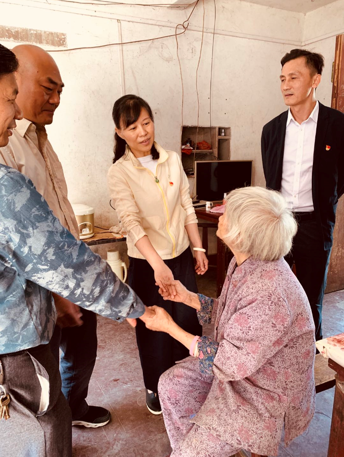 萬錦英老人家中有三口人,其 53歲的兒子在外打工的同時要照顧視力一級殘疾的孫子,所以老人在黎塘村老屋的家中常常是一個人居住,平時飲食起居全靠老人自己。蔡慶立同志駐村后經(jīng)常關(guān)心老人的身體生活狀況,噓寒問暖,甚至為老人量腳上網(wǎng)購買合適的鞋;老人屋后出入的木橋破舊,存在安全隱患,駐村工作隊為老人籌資修建了結(jié)實的鐵板橋和護欄。老人拉著前來探望她的陳蓉書記,眼含熱淚,對幫扶單位和駐村工作隊一再表示感謝。老人腰腿不好,我們離開時鎖好她家后門不讓她送,她堅持走出二樓門外,站在新修的鐵橋邊,依依不舍目送我們離開……