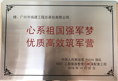 K801營房工程榮譽(yù)獎牌
