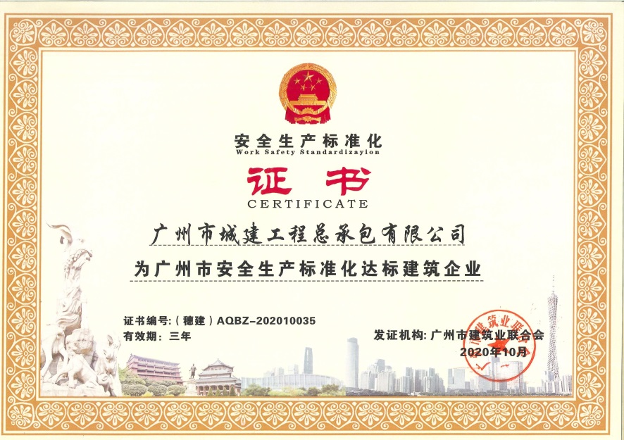 廣州市安全生產(chǎn)標(biāo)準(zhǔn)化達(dá)標(biāo)建筑企業(yè)